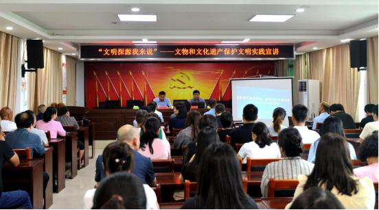 为大力弘扬中华民族传统文化,展现文物资源的价值内涵,营造保护文化遗产的良好社会氛围,9月20日,新蔡县在古吕街道文明实践所举行“文明探源我来说”文物和文化遗产保护文明实践宣讲活动,特邀省文物考古研究院副院长梁法伟做专题讲座,县委常委、宣传部长、副县长刘久锋主持会议。